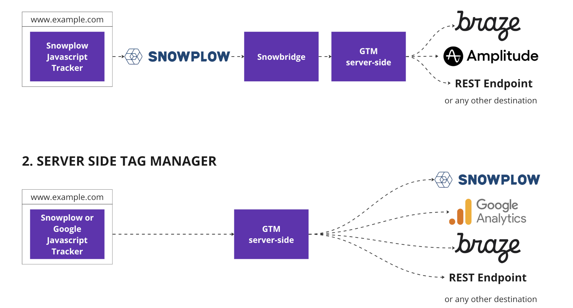 GTM SS with Snowplow can be setup in two different configurations.