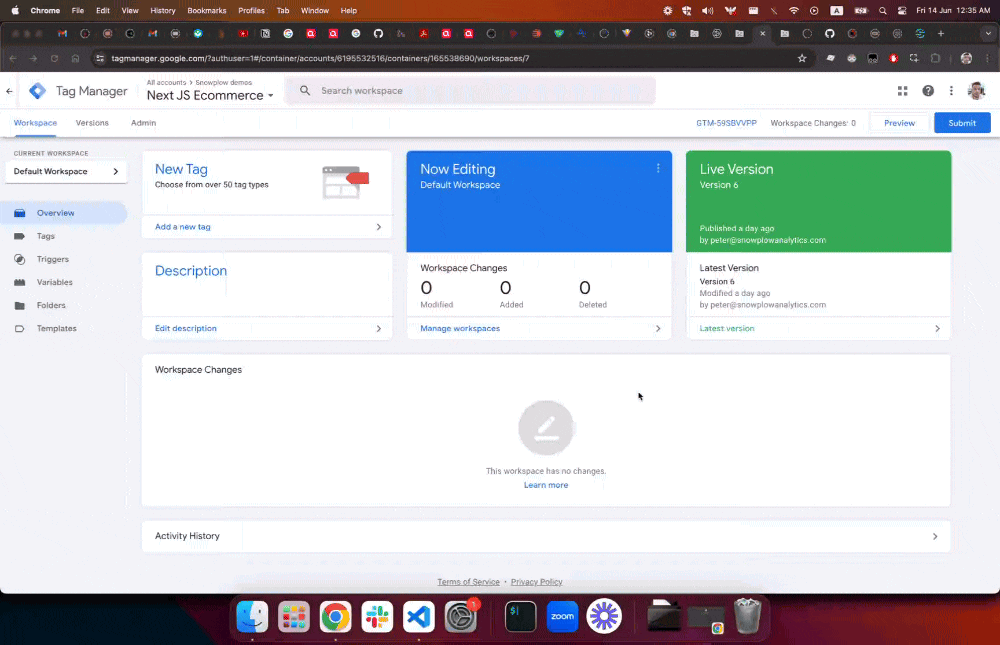 What we are going to showcase here is how you can set up a separate project that uses Snowtype to generate code for your Google Tag Manager tracking needs. You can also use version control to better understand any changes you make across time.