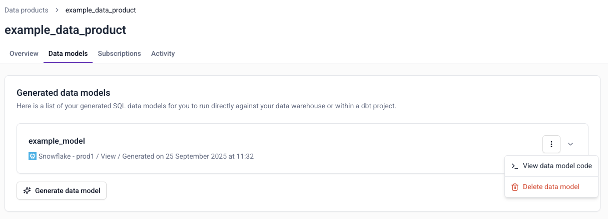 You can view the SQL at any time by choosing View data model code from the ⋮ menu.