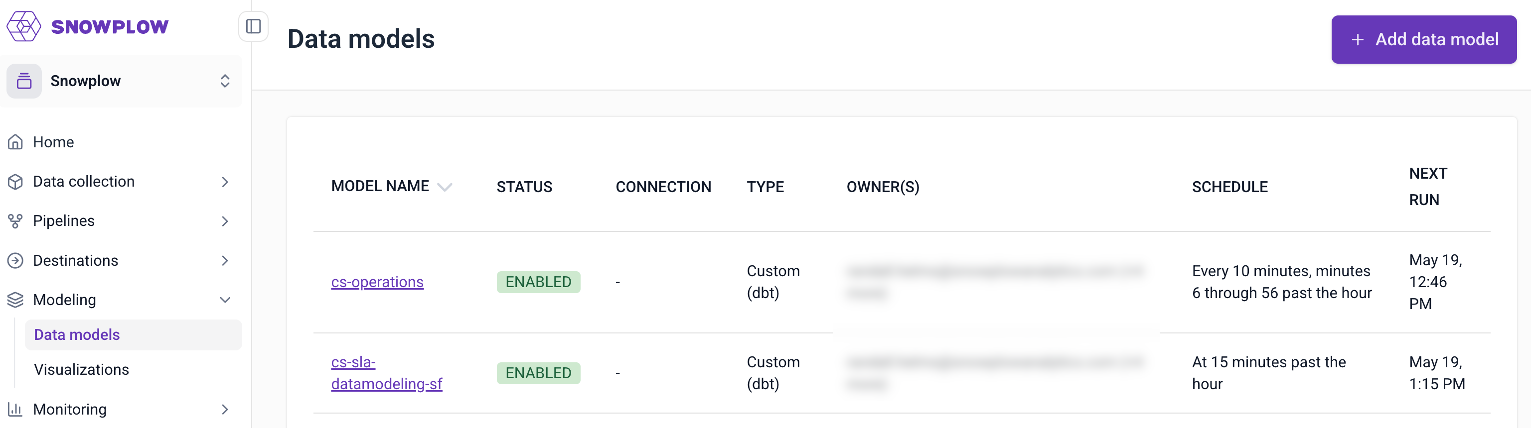 After you've set everything up, Snowplow Console will run the model according to the provided schedule. You can monitor your data model runs on the Jobs page.