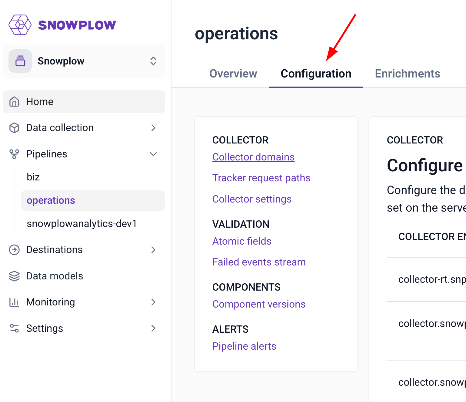 Viewing collector configuration in Snowplow Console