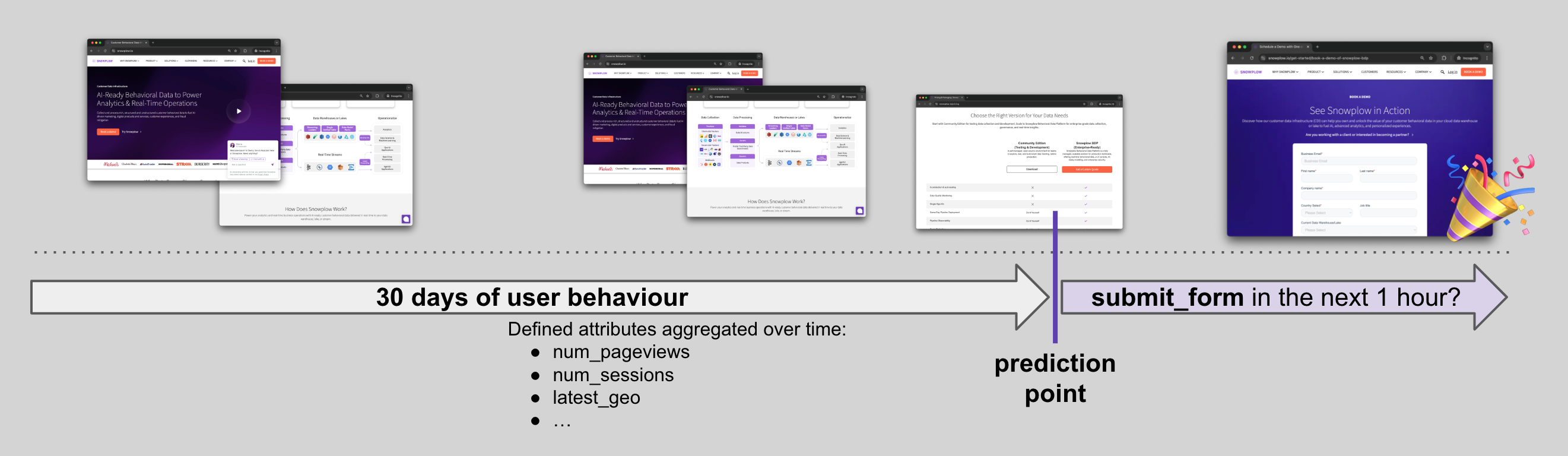 We want to predict if a specific prospect is likely to submit a form in the next hour, given their behavior before the prediction moment.